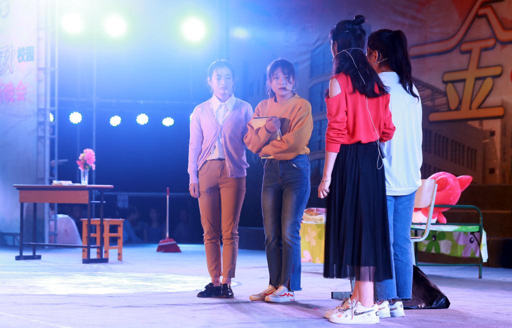 晚会在旋律优美的《我爱你中国》的乐曲声中拉开序幕,一面巨型五星红旗呈S形在观众席穿梭。与此同时,大学生艺术团舞蹈团、工商管理学院抖音队带来的爵士舞《绚丽校园》闪亮登场,舞者们活力四射的表演,为晚会营造了热烈的气氛。随着化工与纺织学院模特队《创意青春》的唯美亮相,将传统与时尚嫁接,原创与自主并行,创意十足,展现了青春风采,引得掌声与欢呼声不绝于耳;今年刚入校的2018级新同学也用歌曲联唱的形式表现了他们喜悦的心情;丁玲老师领舞的舞蹈《茉莉花》美轮美奂,柔美、轻盈、曼妙的舞姿深深地打动了现场的每一个人;晚会特邀嘉宾,咸阳市三大男高音歌唱家张立、崔兵、张戈演唱的歌曲《我的太阳》瞬间征服全场,欢呼声、喝彩声使整个现场成了欢乐的海洋;小品《女生宿舍的钟点工》纯朴真挚的情感表现以及高难度的武术表演更是将晚会推向了高潮。荣获全国大学生艺术展演一等奖作品《情系梁家河》声情并茂、激励人心的朗诵深深地感染了在场的每一位观众,演员谢幕后,掌声经久不息;随后,党焱老师一曲《好儿好女好江山》高亢嘹亮、音画《长征的信念》给观众留下了深刻的印象,最后,晚会在大合唱《共筑中国梦》嘹亮的歌声中落下帷幕。