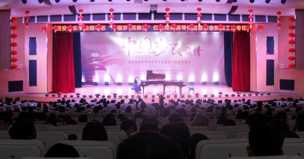 12月19日下午,应我院邀请,西安音乐学院“中国梦·民族情”红色经典钢琴作品音乐会在我院明德堂礼堂举行,西安音乐学院党委书记张立杰,钢琴系主任李壮壮、党总支书记梁秦、副主任李佳、吴晓韬和我院党委书记惠朝阳、院长张晓云、副院长梅创社,各二级学院党总支书记,学工部、大学生艺术活动指导团全体人员、学生代表1100人共同欣赏了音乐会。
