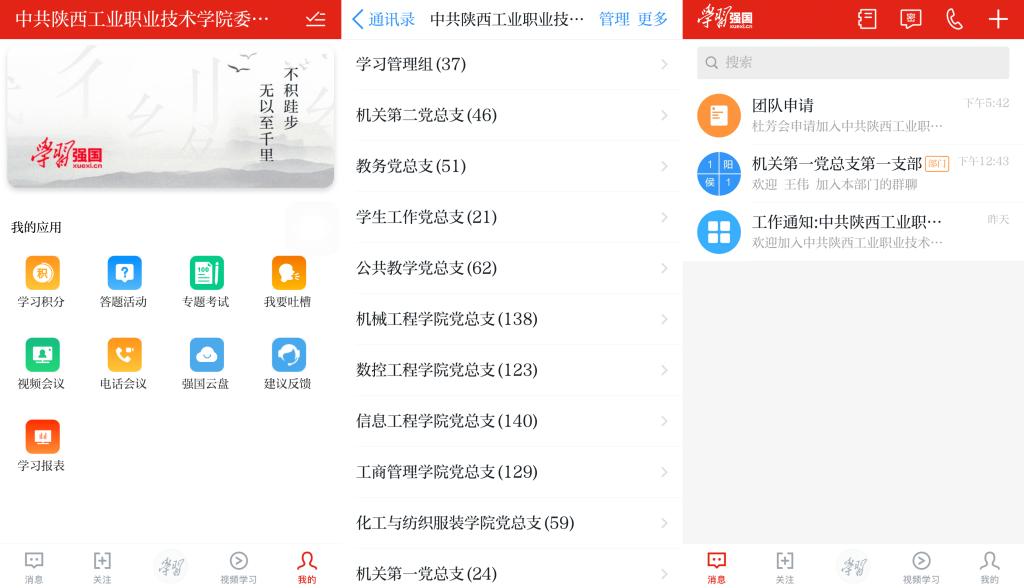 —迅速行动,方案先行。自接到省委教育工委通知后,我院随即成立了由党委主要领导挂帅的学习组织架构,在平台上建立相应的学习组织,确定主管理员、学习管理员、通讯员与评论员,并于23日召开“学习强国”平台启动推进会,印发《学院推广使用“学习强国”学习平台的实施方案》,对加强“学习强国”学习平台推广使用的组织领导、队伍建设、工作要求等进行了安排部署,提出了明确要求。