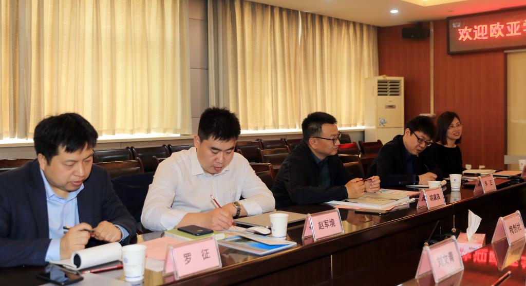 在听取了我院新校区建设和信息化校园建设有关情况介绍后,胡建波董事长结合欧亚学院的四个发展阶段,分析了民办教育的发展历程。他表示,职业教育的发展历程与民办教育有很多相似之处。欧亚正是借助一个善于学习、善与思考的团队,努力创造机遇,成功实施战略转型,成为了一所知名的应用型教育的本科大学。他还用“种树”“咖啡”等形象化的比喻阐述了该校当前正在实施的国际化战略规划。对于新校区建设规划,胡建波董事长建议,应先从定位入手,着眼长远、面向未来,进行常态化规划,再循序渐进、分步实施,建新与改旧并行,还要强调校园建筑的功能性,打破空间、规划场景,为学生提供高质量的学习和生活环境。他还希望两校能充分利用各自优质教育资源,建立更加紧密的战略合作关系。