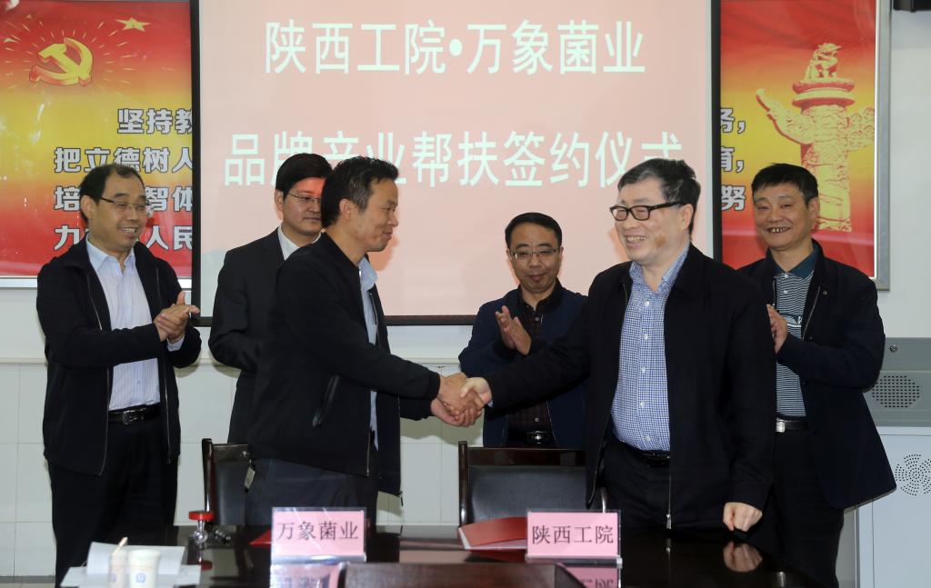在双方领导的共同见证下,李选芒与陈森代表校企双方签订《陕西工院万象菌业品牌产业帮扶协议》。