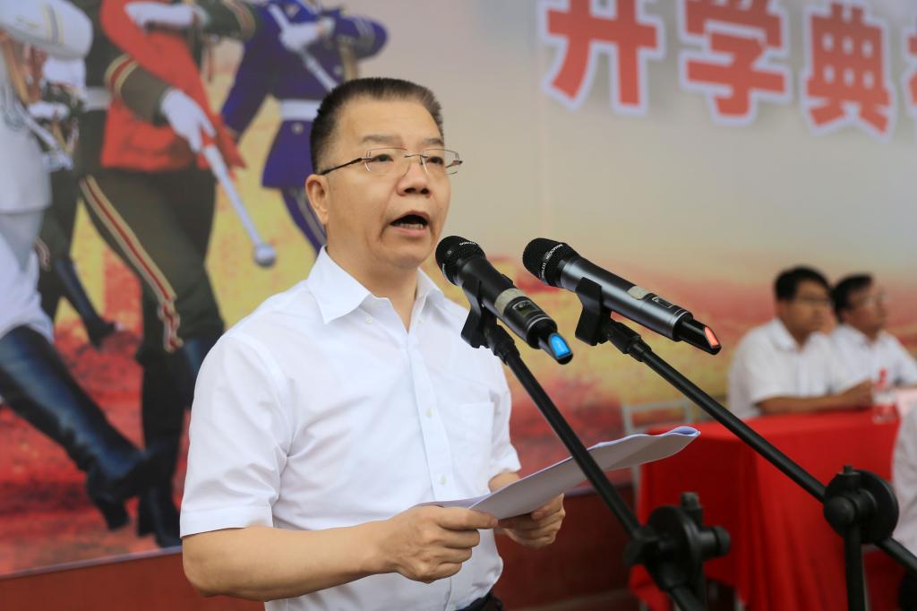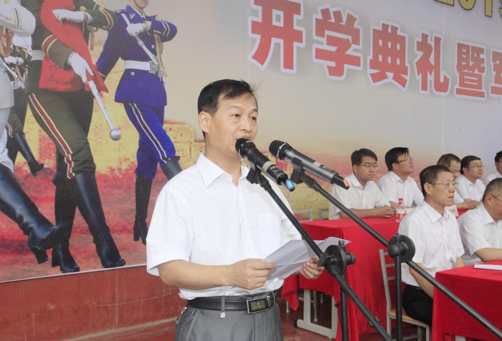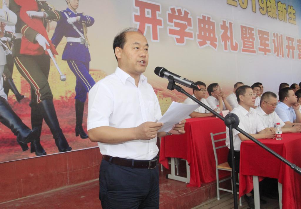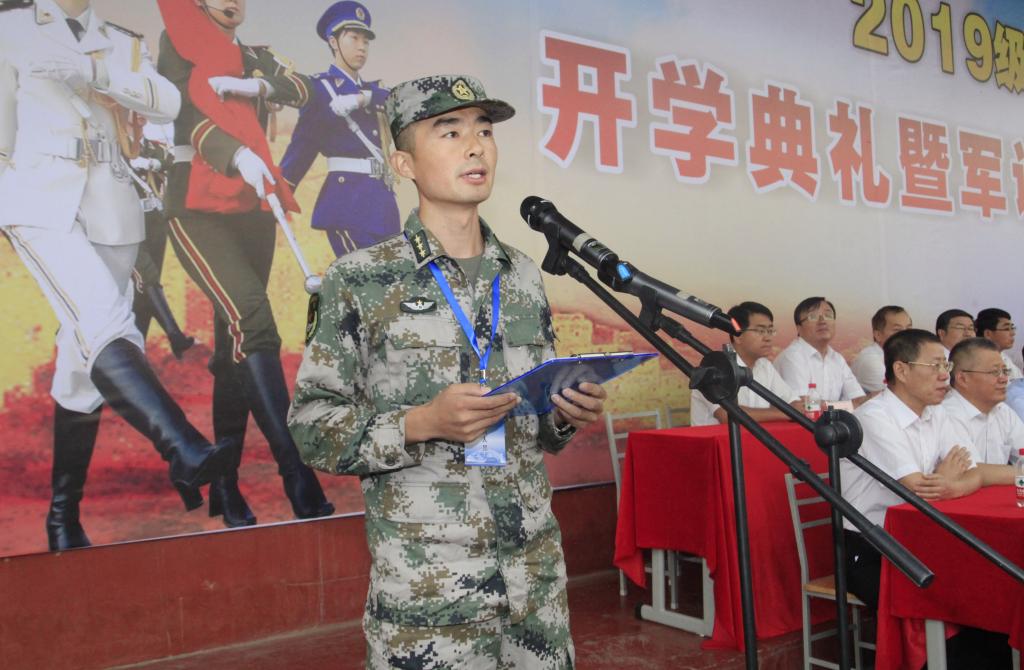最后,学院副院长梅创社宣布军训团编制及任命。党委书记惠朝阳宣布2019级新生军训开营。