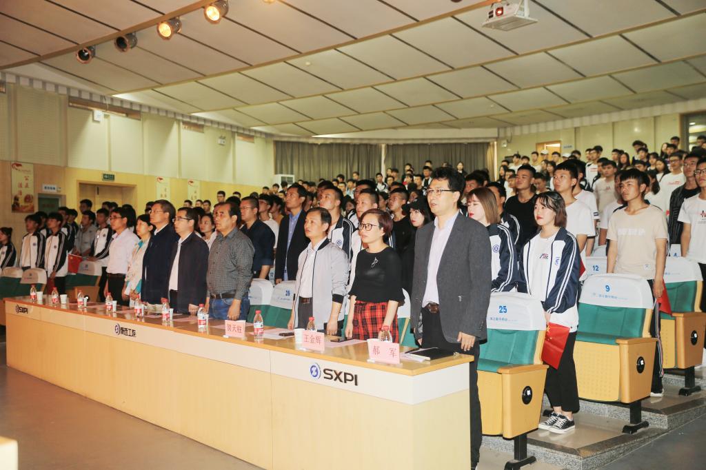 随后,在全国职业院校技能大赛“嵌入式技术应用开发”赛项一等奖获得者电气工程学院李慧峰同学的领誓下,全体学生用嘹亮的声音向祖国深情告白。