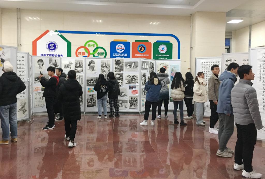 徜徉于翰墨飘香的艺术殿堂,或驻足凝思、或停留拍照、或相互探讨,在一幅幅赏心悦目的书画作品前,同学们神态各异,他们感受到了生活中多彩的美,一幅幅稚趣盎然的书画作品都洋溢着对新年的期盼与祝福,充分展示了我院学生良好的的艺术素养和积极向上的精神风貌,更是向全院师生奉上的一场艺术盛宴。