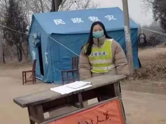 汽车工程学院冯情情同学,家住蓝田县三官庙镇过风岭村,和村里的“硬核”大爷们一起工作,变成村里的“拦路虎”,认真排查每一位进出人员,严格管控外来人员的流动,车辆登记,测量体温,跟着村里的工作人员挨家挨户发放防疫宣传单。
