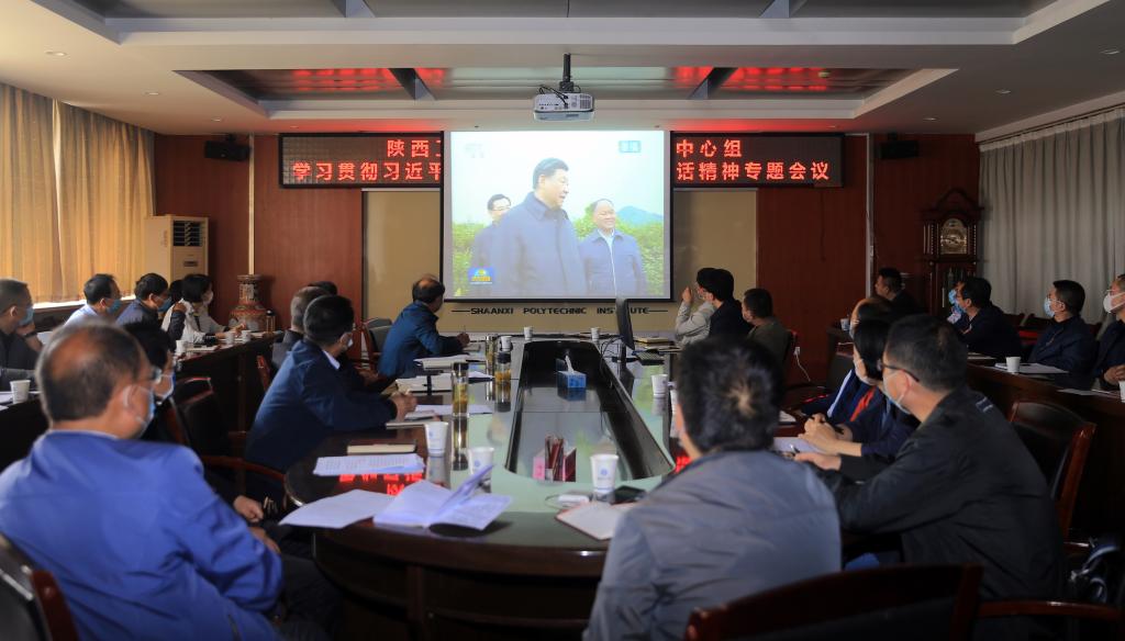 会上,党委中心组成员集体观看了新闻视频《习近平在陕西考察时强调扎实做好“六稳”工作,落实“六保”任务,奋力谱写陕西新时代追赶超越新篇章》;院长刘永亮领学了习近平总书记来陕考察重要讲话精神,传达了省政府召开深入学习贯彻习近平总书记来陕考察重要讲话精神电视电话会议精神;纪委书记康强传达了陕西省委学习习近平总书记来陕考察重要讲话重要指示会议精神;党委副书记贺天柱传达了省委教育工委学习习近平总书记来陕考察重要讲话指示会议精神;党委副书记田昊传达领学了习近平总书记在西安交通大学考察时的讲话精神。