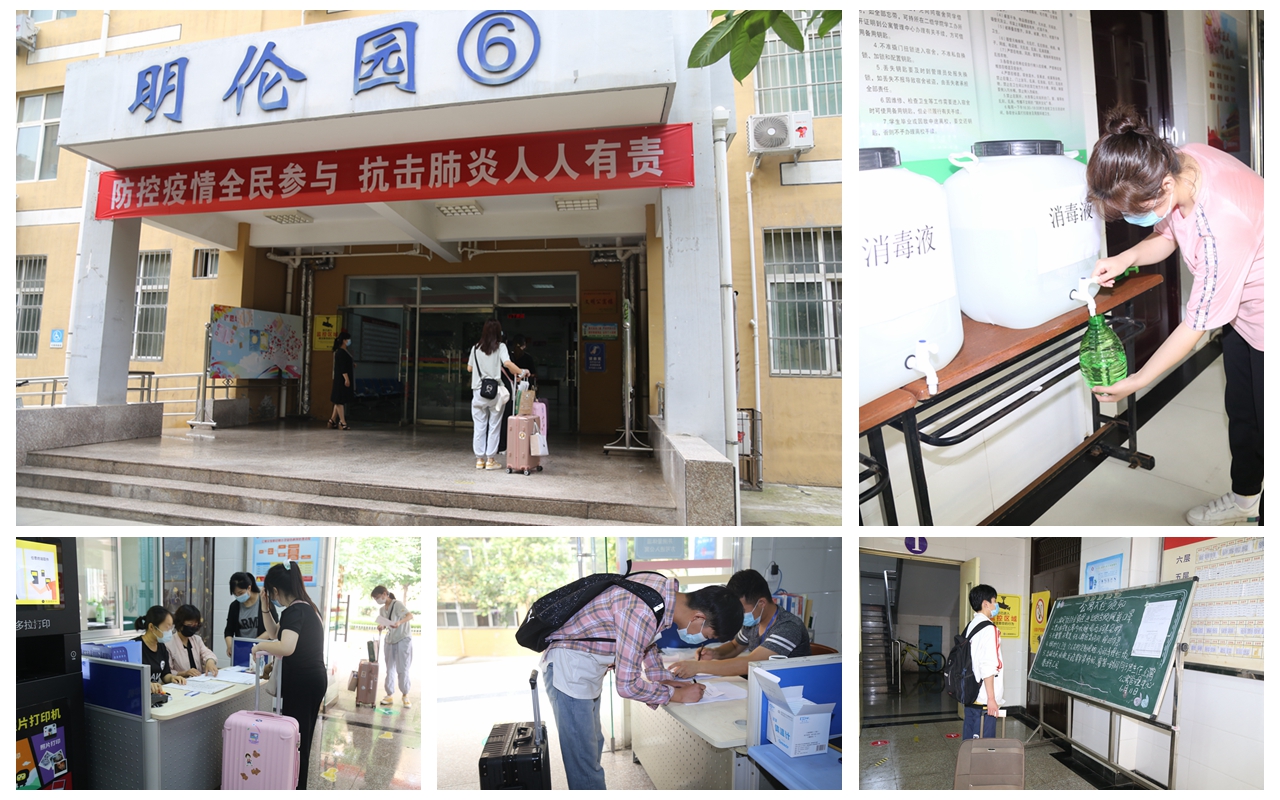 整个复学过程环环相扣,安全有序。所有工作人员和学生志愿者分布在各个岗位,用热情、严谨、周到的服务让返校学生从多环节多站点测温、身份确认、注册报到、签订承诺书、领取防疫物资、办理公寓通行证等方面,感受学院的温暖和关怀。