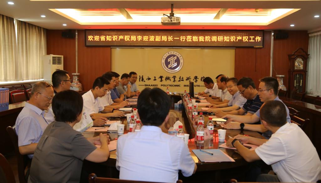 调研组观看了学院专题片后,惠朝阳书记对李迎波副局长一行来我院调研知识产权工作表示热烈欢迎,并从学院“有历史、有精神、有伙伴、有口碑”的四有办学特色、创新创业、校企合作以及“双高”建设等方面向调研组做了详细介绍。科研处处长刘引涛从知识产权建章立制、发展状况和未来构想等三个方面向调研组进行了汇报。李迎波副局长对我院知识产权工作取得的成效给予充分肯定,希望在今后的工作中陕西工院继续扎实做好知识产权的贯标工作,坚持职业教育高质量发展,持续加强对教师和管理人员开展知识产权的专题培训,加强对学生知识产权认识的教育宣传。