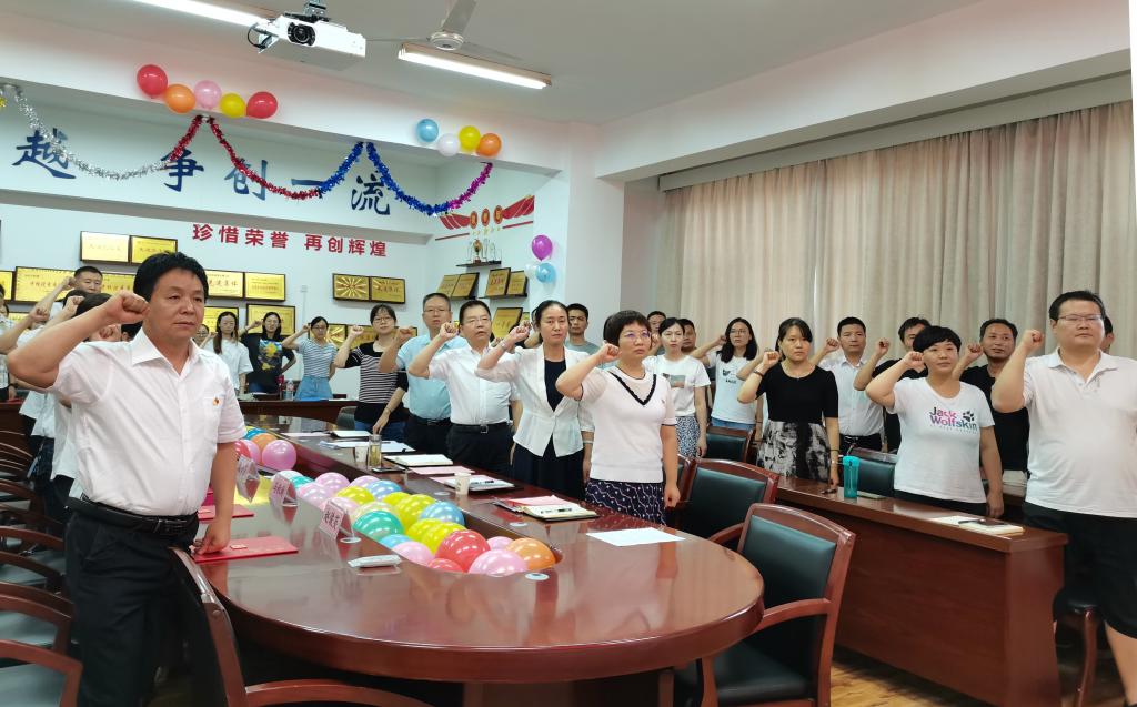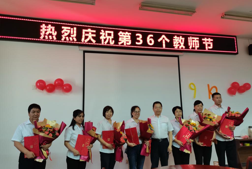 庆祝会上,2020年新入职的六名教师签署了《教师师德师风承诺书》。全体教师面向国旗进行了庄严宣誓,用铮铮誓言表达自己忠于教育事业的信心和决心。