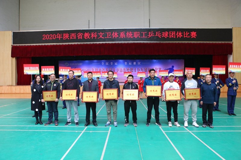2020年陕西高校教职工乒乓球团体比赛以“全民全运,全运惠民”为主题,来自全省教科文卫体工会系统55个单位参赛队的400多名领队、教练员和运动员参加了比赛。