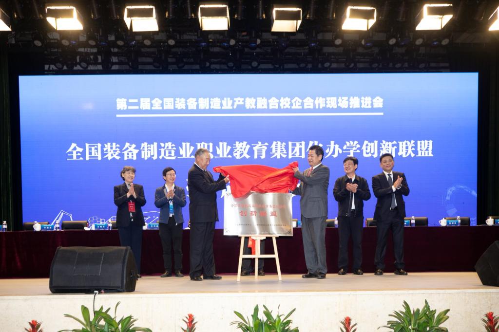 为深入贯彻《国家职业教育改革实施方案》,加强装备制造类职业教育集团(联盟)间的沟通与协调,优化整合机械行业各类资源,探索形成更加多样的集团化办学模式,推进装备制造领域集团化办学工作科学化、规范化和精益化发展,机械工业教育发展中心和全国机械职业教育教学指导委员会发起成立“全国装备制造业职业教育集团化办学创新联盟”。10月27日,联盟成立大会于在宁波召开。10月28日,中国机械工业联合会会长王瑞祥,中华职业教育社副理事长苏华在第二届全国装备制造业产教融合校企合作现场推进会上为“全国装备制造业职业教育集团化办学创新联盟”进行了揭牌。