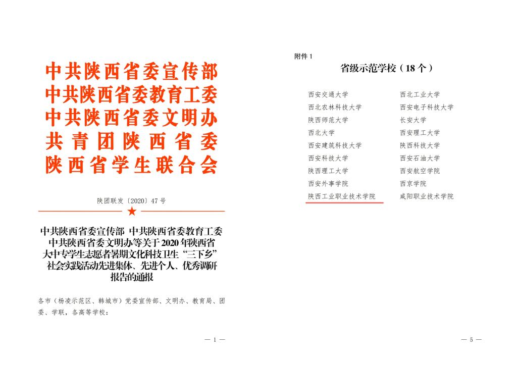 为推进“三下乡”社会实践活动持续深入开展,在实践育人中发挥更加突出的作用,近日省委宣传部、省委教育工委、省委文明办、团省委、省学联联合开展的2020年陕西大中专学生志愿者暑期文化、科技、卫生“三下乡”社会实践活动先进集体、先进个人等评选活动落下帷幕。我校荣获2020年陕西省大中专学生志愿者暑期文化、科技、卫生“三下乡”社会实践活动“省级示范学校”,商贸与流通学院”青马·红旅·习行”红色基因观察团 、电气工程学院“义务维修家用电器,传承践行西迁精神”暑期社会实践调研团荣获“省级优秀团队”称号,商贸与流通学院薛媚、电气工程学院赵松、信息工程学院张斯瑶分别荣获“省级先进个人”称号。