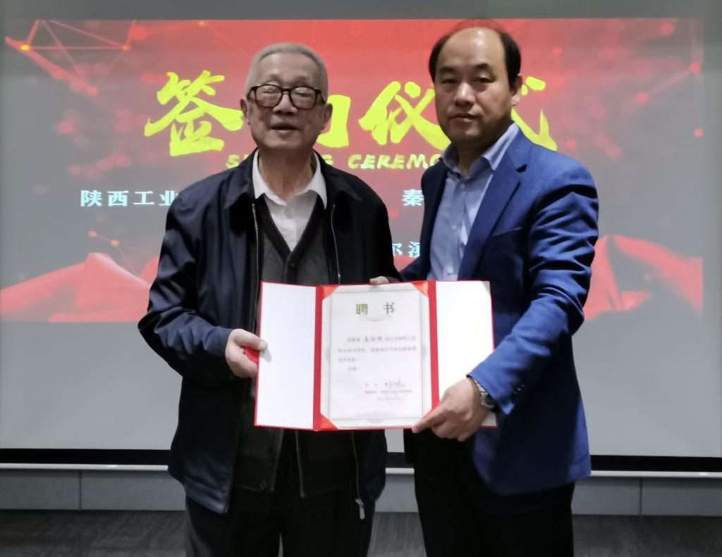 仪式上,梅创社副院长与秦裕琨院士签订了院士工作站设立和首席技术专家聘任协议,并为秦院士颁发了国家高水平专业群首席技术专家聘书。秦裕琨院士为我校“新能源及装备研发秦裕琨院士工作站”授牌。梅创社副院长代表陕西工院向秦裕琨院士团队介绍了我校双高建设情况。秦裕琨院士对国家大力发展职业教育表达了赞赏,对高水平技术技能人才培养表达了高度的关注,并为自己担任国家高水平专业群首席技术专家指导学校专业群建设工作表示了期许。他希望以本次工作站成立及受聘为契机,在科研、成果转化、专业教学和人才培养等方面开展深入合作,为国家装备制造行业发展培养更多更有用的技术技能人才。