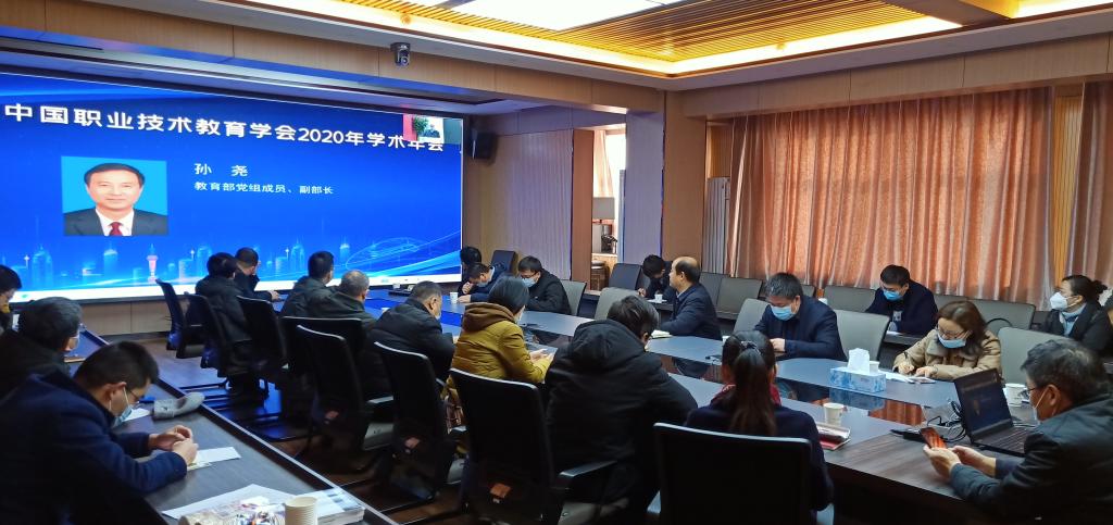 1月31日,中国职业技术教育学会2020年学术年会隆重举行。本次年会的主题是“构建新发展格局:提升现代职业教育适应性”。教育部副部长孙尧,中国职教学会会长、教育部原副部长鲁昕,中国科学院潘建伟院士等11位科学院和工程院院士,国务院发展研究中心原副主任王一鸣等领导专家,教育部相关司局和直属单位、部分省教育厅、中国工业互联网研究院等多家教育行政部门、研究机构、企业单位的有关负责同志出席。由于防疫工作要求,本次年会以线上线下相结合的形式召开。我院副院长梅创社、段峻以及教务处、双高办、科研处、发展规划处、各二级学院等十余部门近40人参加了本次年会。
