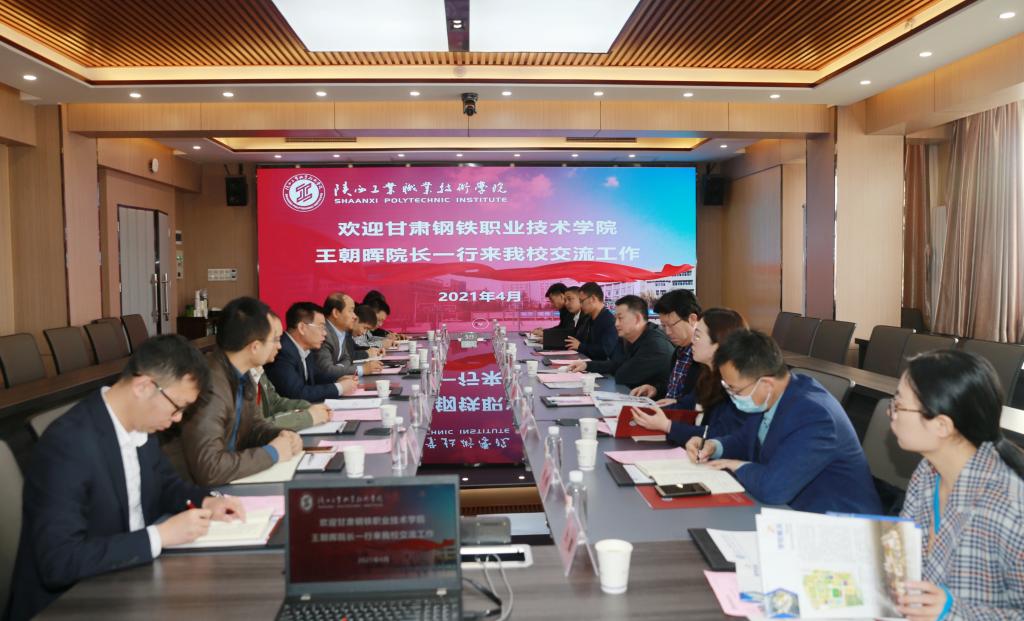 4月7日上午,甘肃钢铁职业技术学院院长王朝晖,纪委书记、工会主席杨俊生,马克思主义学院副院长张欣,机电工程系主任高文博,资源与能源工程系主任张巍,焊接工程系主任周振宏,现代商贸与服务系主任张露,信息工程系主任赵海亮等一行8人来我校交流工作。校长刘永亮、副校长梅创社,校企合作处处长及教务处、电气工程学院、材料工程学院、商贸与流通学院、马克思主义学院等相关部门业务负责同志在崇文楼九楼第一会议室与来访嘉宾进行了交流座谈,座谈会由副校长梅创社主持。