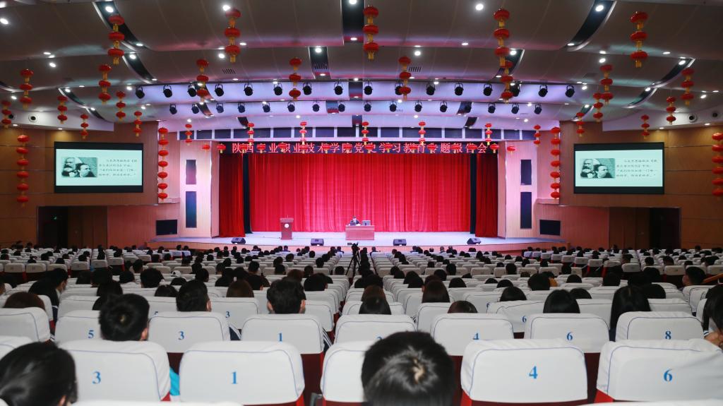 4月7日下午,我院举办党史学习教育专题报告会,西北大学马克思主义学院赵沛副教授应邀为我院师生作了题为《何以得天下,何以安天下——探究中国共产党百年历程的成功之道》的专题报告。报告会在明德礼堂召开,党委副书记田昊主持,全院副科级以上干部,教师党员代表,学生党员、入党积极分子,学生代表等400多人聆听了报告。