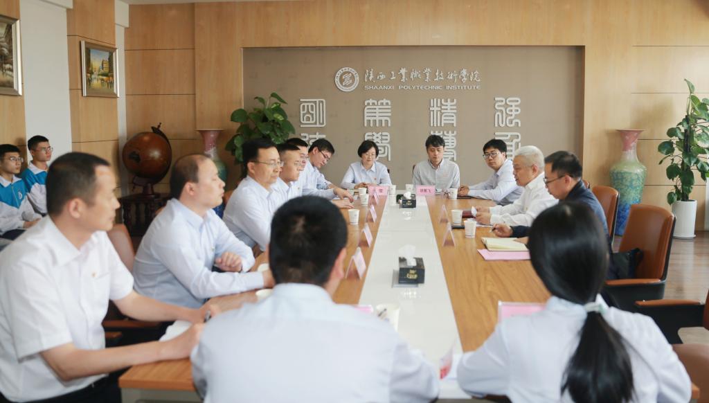 5月12日上午,省委党史学习教育第十四巡回指导组组长刘江南,副组长李四军,成员王凌云、郝建武、加婷婷、曹远、高仪铎一行莅临陕西工业职业技术学院,对我校党史学习教育的开展情况进行巡查、指导,并召开调研座谈会。学校党史学习教育领导小组组长、党委书记惠朝阳,党委副书记、纪委书记康强,党委副书记贺天柱、田昊,以及我校党史学习教育领导小组全体成员,相关部门及二级学院党组织负责人,部分师生代表参与本次巡回指导组来校检查相关工作。田昊同志主持巡回指导组检查工作汇报会。