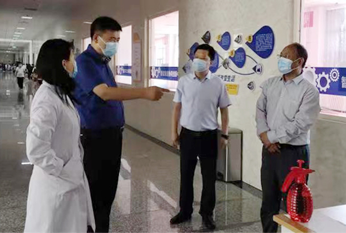 副院长刘清、渭城区卫健局局长刘建林在精艺楼接种现场检查指导