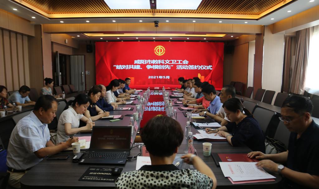 5月31日,咸阳市教科文卫工会“结对共建、争模创先”活动签约仪式在我校崇文楼九楼第一会议室举行。咸阳市总工会党组副书记、常务副主席张静,市教科文卫工会主席杨勇方,我校党委副书记田昊、工会主席张彬出席了启动仪式,来自陕财职院、陕能职院、咸阳职院、市中心医院、市农科院等17家高校、单位的工会主席和职工代表参加活动。