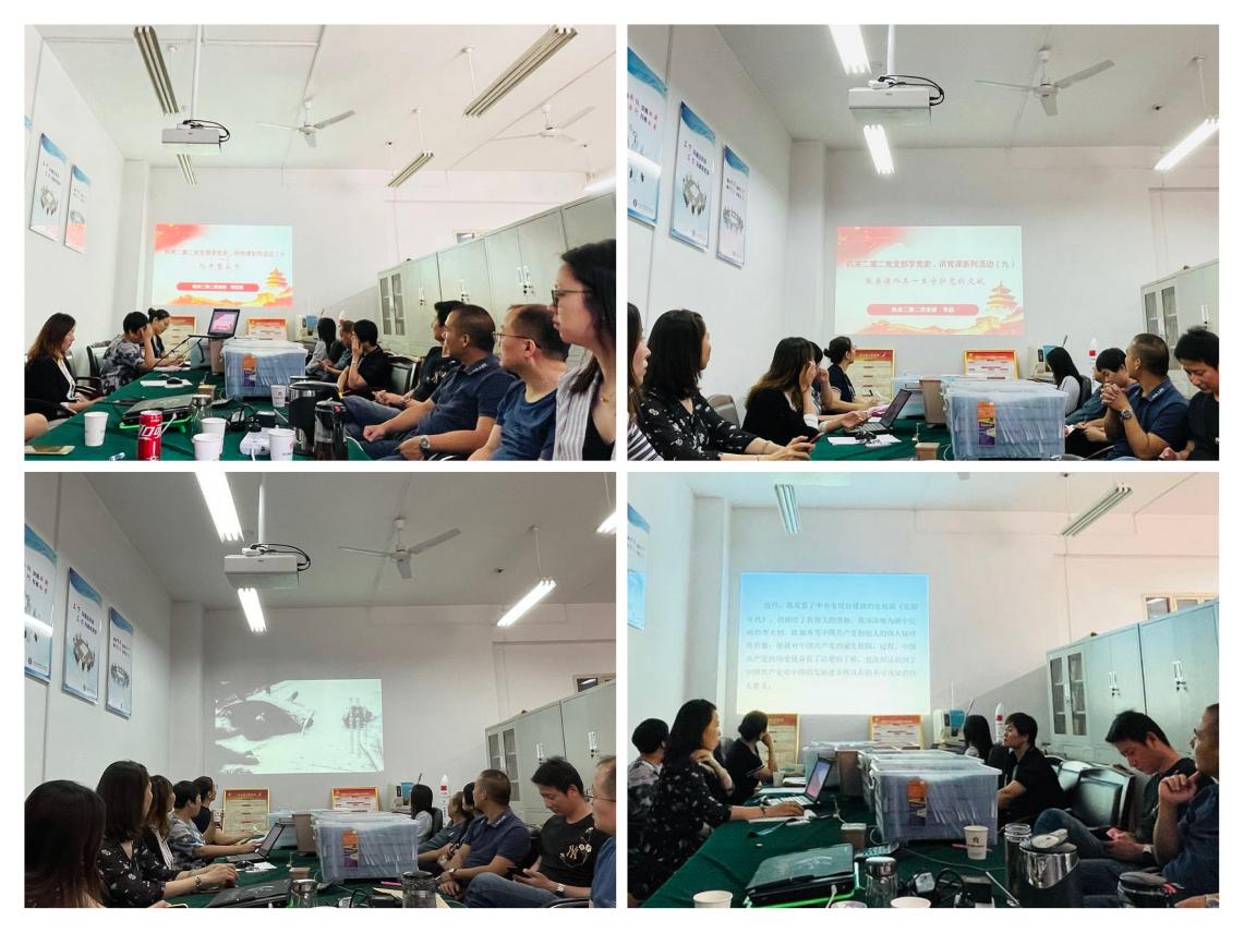 6月30日,支部书记邓丽萍主持了本次党史学习教育的总结会,作了“汲取党史大智慧,立足岗位做贡献”专题报告,党员们纷纷表示在本职工作岗位上必须加强学习,增强意识,以实际行动践行党的根本宗旨。在本职岗位上发挥党员的先锋模范作用,为了党的事业,集体利益,发自内心地去为我们学校和社会做一些事情。最后支部书记邓丽萍强调全体党员要以党史学习教育作为源动力,将蕴含在党史中的思想结晶和精神财富学出来悟出来,转化为思想自觉、精神动力、行为准则,在学校的事业发展中发光发热、在建设社会主义现代化国家新征程中建功立业。