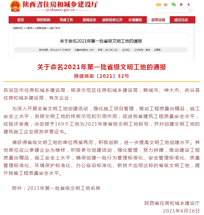 此次省级“文明工地”的获得,也是继2020年咸阳市文明工地观摩会之后荣获的又一综合荣誉,为项目整体申报“长安杯”、争创国家优质工程夯实基础。