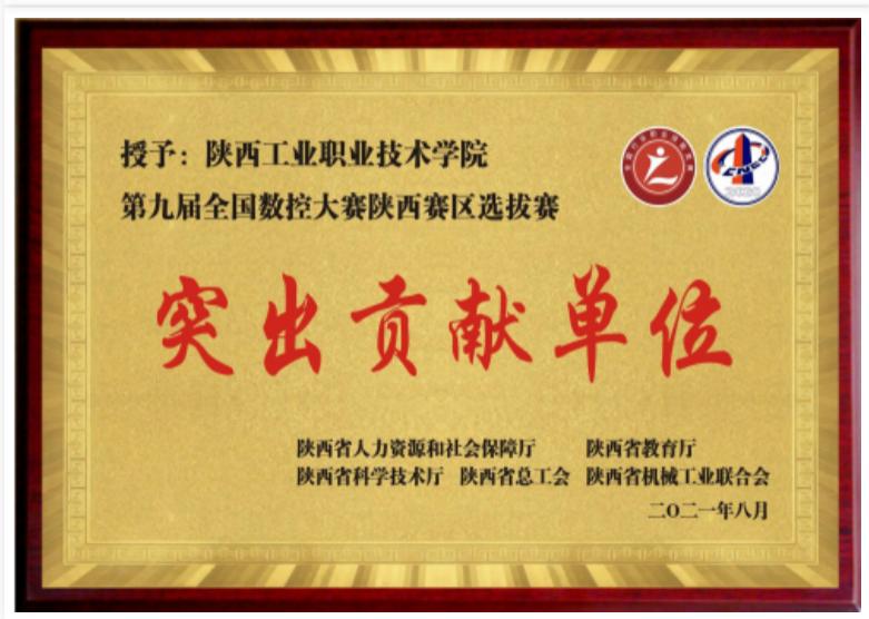 近日,由人力资源社会保障部、教育部、科技部、全国总工会、机械工业联合会等五部委联合共同举办的第九届全国数控技能大赛下发了获奖证书,我校航空工程学院教师梁晓哲、王姣姣获全国总决赛团体二等奖1项。航空工程学院师生在陕西省赛区中获一等奖2项,二等奖2项,三等奖2项,我校获得全国优秀组织奖、陕西省突出贡献单位奖。