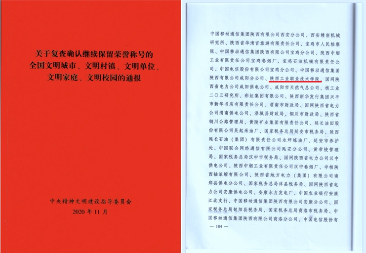 学院成功入选国家“双高计划”建设单位A档(全国前十,西部第一);成功入选“国家优质校”(全省第一);全国职业院校技能大赛获奖总数位列全国第二、西部第一;首批入选全国教学工作诊断与改进试点院校;首批入选全国“1+X”证书制度试点院校;首批通过全国职业教育信息化试点项目验收;首批入选全国示范职教集团(联盟)培育单位;首批入选教育部“有色金属行业职业教育‘走出去’首批试点项目学院”;首个承担教育部职业教育专业建设认定标准研制高职校;陕西首家通过教育部职业教育专业教学资源库验收高职校;陕西首家获评教育部精品在线开放课程;陕西首批入选教育部职业院校校长培训培育基地;陕西省“四个一流”建设院校排名第一;陕西唯一连续三届荣获陕西省人民政府高等教育教学成果特等奖高职校。荣获“全国文明单位”等国家级荣誉41项、“陕西省先进集体”等省级荣誉117项;多项核心办学指标名列全国前三、西部第一,成功跻身全国高职第一方阵。