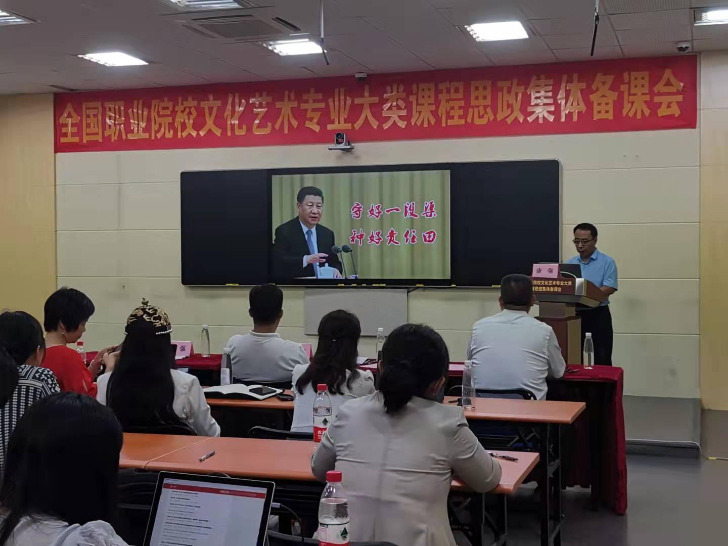 我校教育部课程思政示范课程负责人、课程思政教学名师康强教授及其团队,先后受邀参加了全国职业院校文化艺术专业大类和轻工纺织大类课程思政集体备课会。通过线上方式向全国同类职业院校数千名教师分享了课程思政教学总体设计、经验做法,并进行了现场教学展示。全面体现了以“课程思政”为目标的课堂教学改革思想,将专业课程所蕴含的思想政治教育元素和所承载的思想政治教育功能,融入了课堂教学各环节。