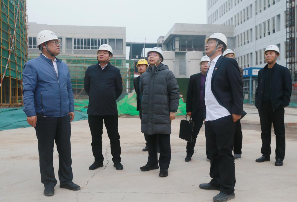 随后,惠朝阳书记一行前往新校区施工现场进行实地查看。他强调新校区建设是学校的重要大事,要求工程建设人员按照既定目标倒排工期挂图作战,在人员、资金、材料等资源上做到科学合理配置,不降标准不减内容,集中精力、全力以赴、攻坚克难,高质量高水平完成学校新校区建设任务。