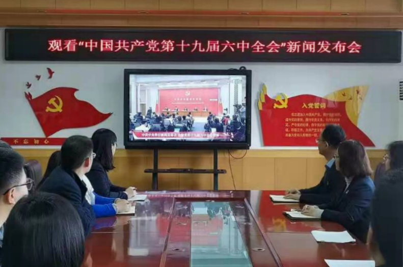 材料工程学院组织50余名师生收看十九届六中全会新闻发布会,师生代表聆听了十九届六中全会精神,感受到中华民族在中国共产党的带领下一步一步走向复兴,坚定了理想信念,增强了努力奋斗的决心。
