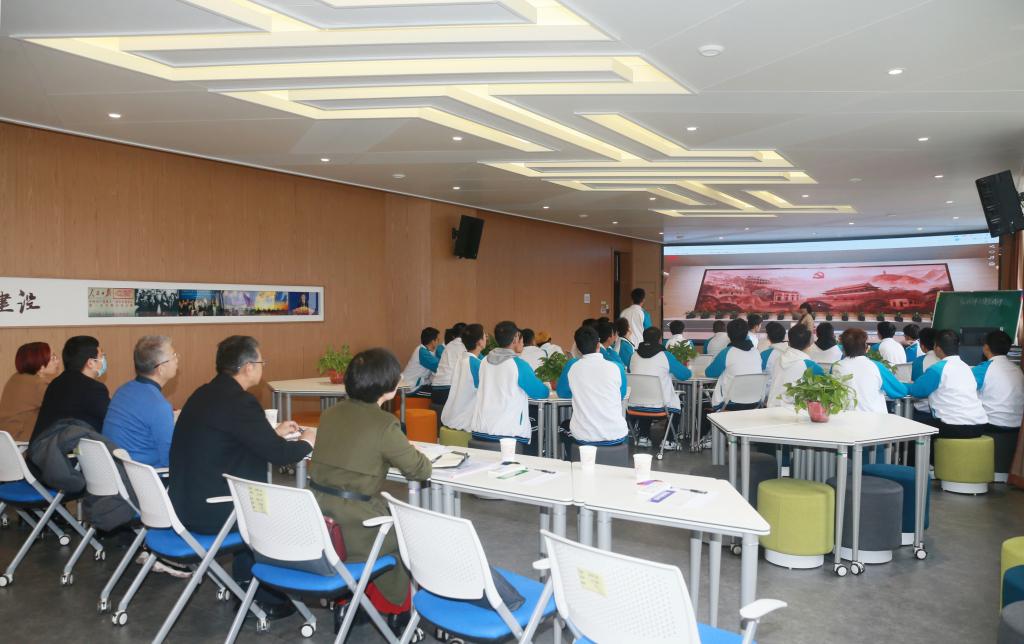 在马克思主义学院VR实训中心,陕西高校思政课“大练兵”教学标兵、我校马克思主义学院副教授董娟以弘扬建党精神为主题,进行了一场理实一体化教学。利用3D资源、VR智能设备,董娟带领大家深入参观了中国共产党第一次全国代表大会纪念馆,让学生深刻理解伟大建党精神的基本内涵,明确了中国共产党的思想优势、政治优势、精神优势和道德优势。鼓励同学们继续弘扬光荣传统,赓续红色血脉,继承和发扬伟大建党精神,从中汲取立大志、明大德、成大才、担大任的信心和力量,增强做中国人的志气、骨气和底气,苦练本领,增长才干,在新的历史起点走好新时代的长征路。