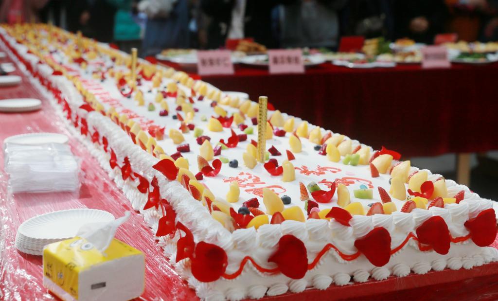 学校食堂制作巨型蛋糕迎校庆