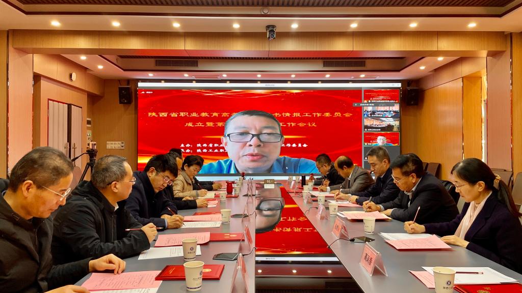 11月19日上午,陕西省职业教育高等学校图书情报工作委员会(以下简称“职教高校图工委”)成立暨第一次委员会工作会议在陕西工业职业技术学院顺利召开。根据疫情防控要求,本次会议采用线上线下相结合的方式,省教育厅职成教处处长付仲锋,陕西工业职业技术学院校长刘永亮,省普通本科高校图工委秘书长张惠君,以及省职教高校图工委的主任委员、副主任委员、常务委员、秘书长等18人在线下参会;教育部高校图工委秘书长、教育部高等教育文献保障系统(CALIS)管理中心副主任陈凌,省职教图工委的其他委员、省外同行等在线上参会。会议由省职教高校图工委主任、我校副校长梅创社主持。