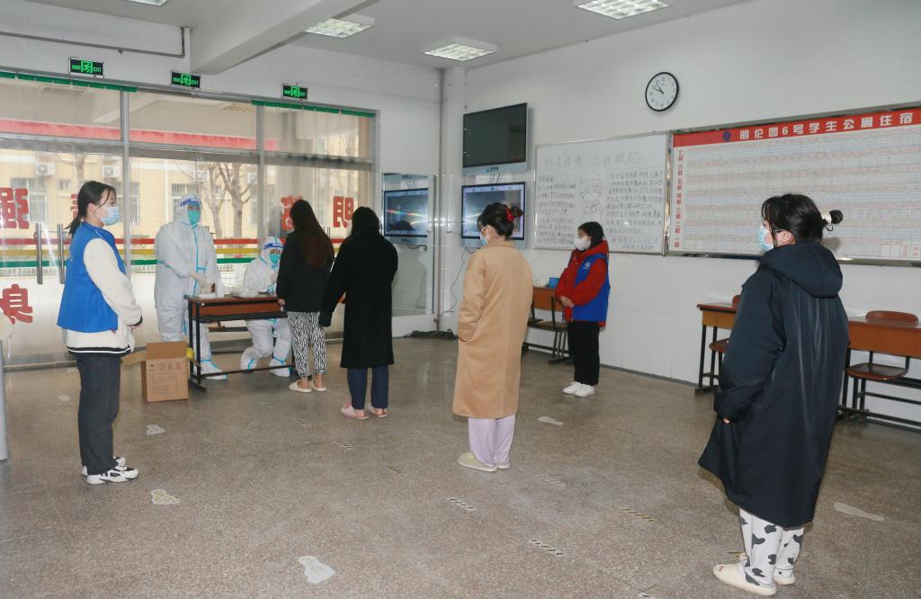 自12月19日全校首轮核酸检测工作开展以来,宿管会的“蓝马甲”们就不曾停歇。维持现场秩序,提醒同学们提前打开健康码、保持距离、注意防寒保暖……机械重复的工作经常一干就到凌晨三四点,但他们毫无怨言。学校近两万名学生、五轮核酸检测顺利进行,无一遗漏,离不开他们的辛勤付出与坚守。学校实行封控管理后,学生凭出入证进出公寓,于是“蓝马甲”们又多了一项站岗值班的工作,每天按时在公寓门口做好登记管理,维持秩序。“我也没感觉到太多辛苦,在这样一个集体中,每天和想伙伴做着有意义的事情,非常充实非常骄傲!”疫情无情,寒风萧瑟,但工院的这抹蓝但给了这个冬天无穷的勇气与力量。