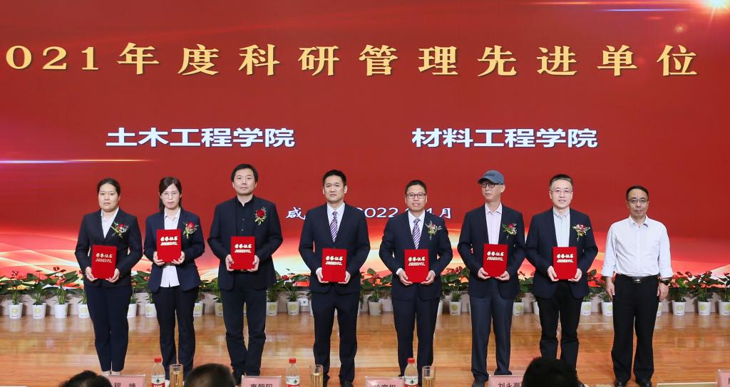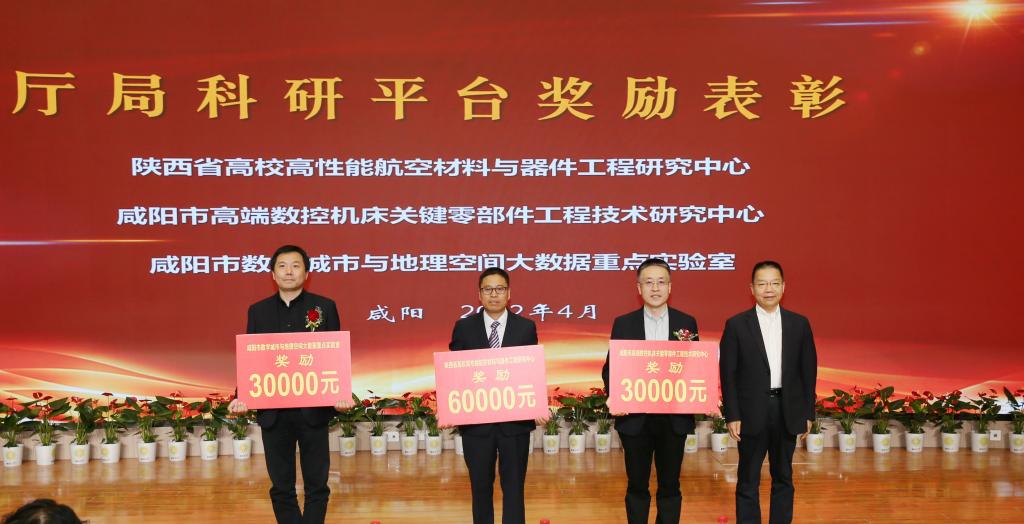 会上,咸阳市科技局在我校设立了咸阳市工程技术研究中心、咸阳市重点实验室两个科研平台,表彰了我校厅局级科研平台、2021年度科研管理工作先进单位、优秀科研工作者,三个二级学院与企业签订了9项横向技术服务合同,合同交易额达1258万元。