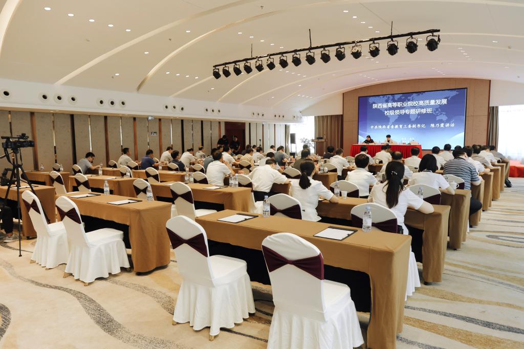 为推动我省高等职业教育高质量发展,全方位提升高等职业院校领导的管党治党和办学治校能力,7月25日,由陕西省委组织部主办、省委教育工委协办、我校承办的全省高等职业院校高质量发展校级领导专题研修班在咸阳正式开班。来自全省23所高职院校的38名党委书记、校长相聚大秦故都,进行为期5天的专题培训。陕西省委教育工委副书记陈乃霞出席开班典礼并讲话,省委组织部宣教干部处一级调研员周群主持典礼并全程跟班学习。