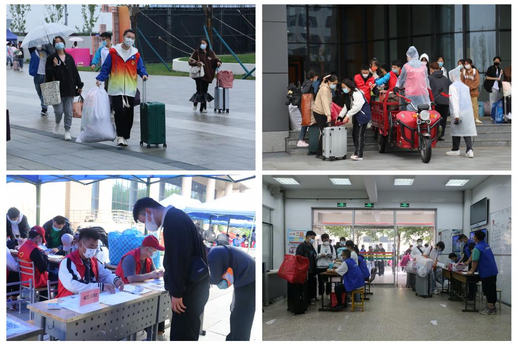 今年迎新恰逢我校经开校区投入使用,崭新的校园以亮丽之姿迎接新生的到来。为统筹好两校区的迎新工作,学校多次召开专题会议,系统安排迎新工作。在疫情防控常态化背景下,为了让新生安全顺利入学,教务系统全面摸排新生数据,整理报到信息,简化报到流程,指导新生做好旅途防护;后勤处、保卫处对校园周边环境消杀、清洁、协调,确保报到工作安全有序;宣传部制作悬挂迎新横幅、报到流程指示牌、校园地图等方便新生顺利完成报到手续;团委组建由学生党员、团学骨干、入党积极分子为主体的志愿服务团队,热情引导,悉心服务,为新生耐心讲解校园环境及相关事项;招办设立办事处,随时协调解决迎新现场各类突发状况。这些初遇的温暖,留下了新生和工院最美的记忆,也开启了无限精彩的未来。