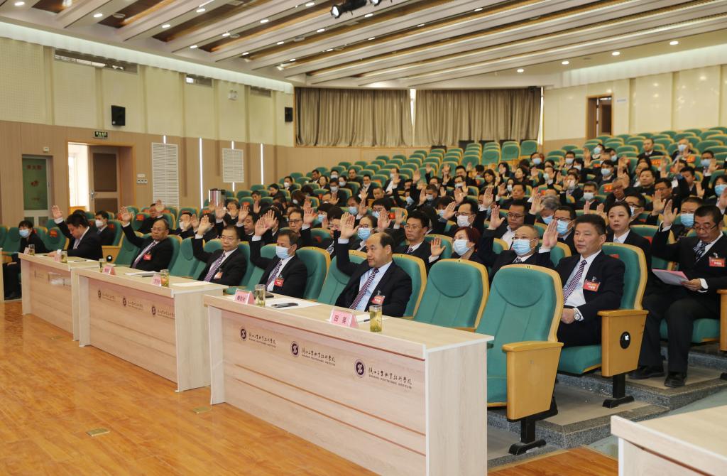 会上,工会主席张彬作《2022年学校工会工作报告》。财务处处长邓丽萍作《2022年学校年度财务报告》,提案委员会汇报四届二次教代会提案处理结果及本次提案征集情况,大会还对2022年度先进集体及个人进行了表彰。在各代表团分组审议后,会议以举手表决的方式,一致通过了相关决议。