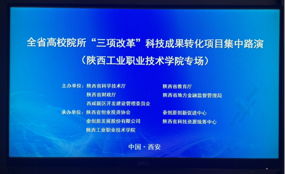 5月23日,全省高校院所“三项改革”科技成果转化项目集中路演(陕西工业职业技术学院专场)活动在西咸会议中心成功举办,这是我省科技成果集中路演的第一个高职专场。集中路演是在陕西省科学技术厅、陕西省教育厅、陕西省财政厅、陕西省地方金融监督管理局、西咸新区开发建设管理委员会的指导下,陕西省创业投资协会、秦创原创新促进中心、秦创原发展股份有限公司、陕西省科技资源统筹中心联合各高校针对科技成果转化开展的高校院所活动。