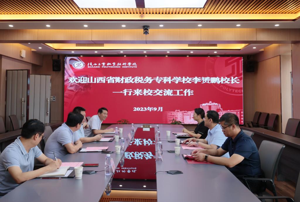 座谈会上,刘永亮校长首先对李赟鹏校长一行的来访表示热烈欢迎,在观看完学校宣传片后,刘永亮校长结合我校“双高”院校建设、新校区建设、职教本科申办三件大事,先后围绕学校的办学成果、内涵建设、人才培养、校企合作等方面进行介绍,使李赟鹏校长一行对我校的办学历史及改革发展有了更深层次的认识和了解。李赟鹏校长对我校近年来的办学成绩给予高度评价,并简要介绍了山西省财政税务专科学校基本情况及发展现状,并希望与我校进一步加强联系,互相学习,共谋发展。随后,双方相关对口部门就信息化建设、校企合作、实训室建设等方面进行了深入的交流。