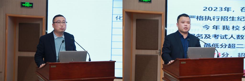 教务处分别汇报2023年度技能大赛情况、2023年度招生工作总结