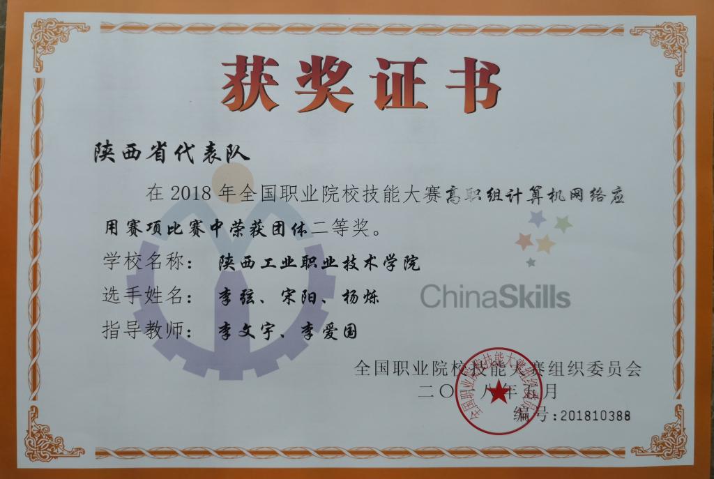 [国赛二等奖]我院荣获全国职业院校技能大赛计算机网络应用赛项二等奖