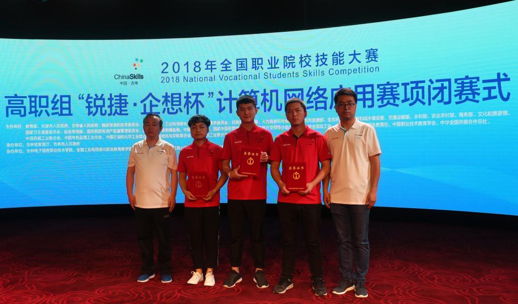 6月3日,2018年全国职业院校技能大赛高职组“锐捷·企想杯”计算机网络应用赛项在吉林电子信息技术学院顺利结束,全国30个省市的86支代表队参加了比赛,经过了四个小时的激烈比拼,由我院信息工程学院教师李文宇、李爱国指导的网络1601班李弦、计应1603班宋阳和网络1702班杨烁等3名同学荣获团体二等奖。