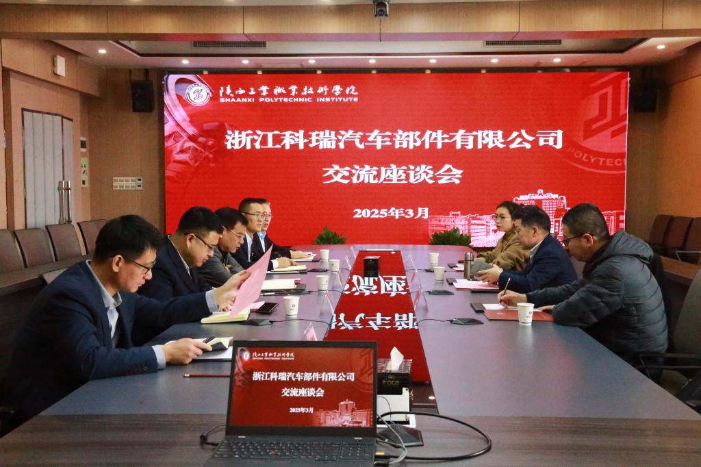 姚必武董事长对我校的热情接待表示感谢,高度评价了我校75年的发展历程与近年来所取得的办学成绩。他简要介绍了浙江科瑞汽车部件有限公司的竞争优势和业务板块,并表示希望以此次交流座谈为契机,充分发挥企业资源优势,实现资源整合和优势互补,进一步深化校企合作。