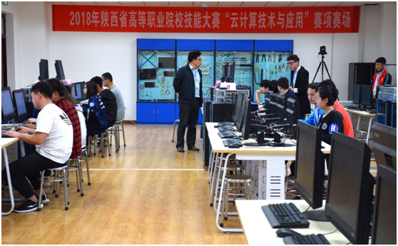 4月1日,2018年陕西省高等职业院校技能大赛“云计算技术与应用”赛项在我院精艺楼五层网络技术实训室举行。本次赛项由陕西省教育厅主办,我院承办,南京五十五所技术开发有限公司技术支持。来自西安航空职业技术学院、杨凌职业技术学院、陕西交通职业技术学院及我院等12所高职院校20支队参加比赛。