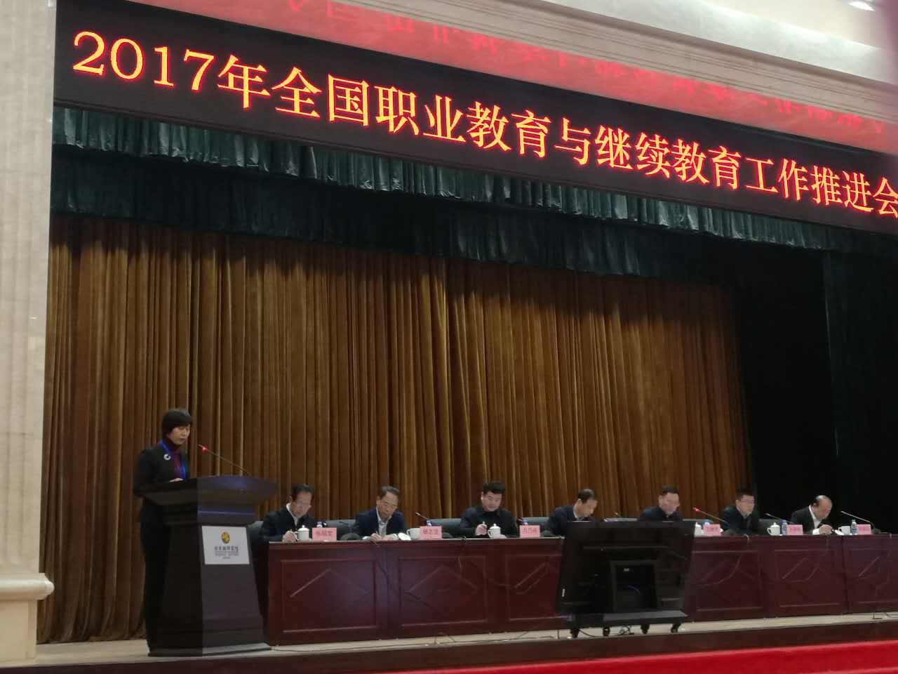 我院院长张晓云教授作为全国高职院校唯一代表,在大会上做了题为“践行职教发展新使命 打造人才培养新高地”交流发言。她从服务国家重大战略,增强支撑发展能力;服务产业发展需要,打造人才培养高地两大部分汇报了我院在职业教育和继续教育方面的具体做法,并从瞄准中国制造2025,提升专业服务产业发展能力;对接“一带一路”倡议,扩大教育对外开放;助力脱贫攻坚战略,履行职业教育社会责任;依托地域区位优势,抓共赢点推进产教融合;借力职教国家项目,抢制高点提升培养水平;借助区域特色资源,打组合拳助力学生成才;立足办学优势,拓新功能助推继教上台阶等七个方面详细介绍了我院的经验,受到与会领导和兄弟单位的一致好评。