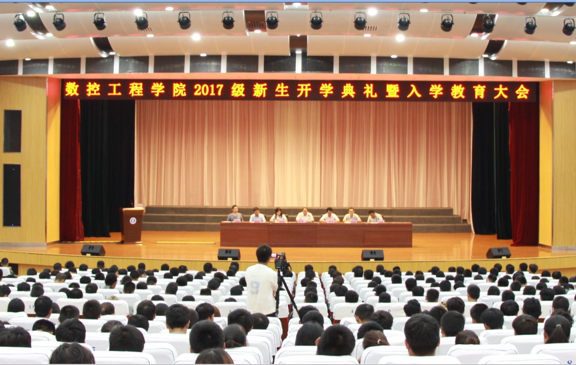9月22日下午,数控工程学院在明德堂礼堂举行2017级新生开学典礼暨入学教育大会,数控学院党总支书记郝军、院长刘清、副院长段文洁、机加工训练中心主任李晓鹏及师生代表参加会议。数控院院长刘清详细介绍了该院的基本情况、专业特点和近年来所取得的成绩,希望全体新生充分利用学校的学习实训条件,以优秀毕业生为榜样,努力学习,早日成就个人梦想。党总支书记郝军对全体新同学的到来表示欢迎,希望他们做好规划,珍惜时光,认真学习,追求卓越。在校学生代表工设1501班马亚静同学和2017级新生代表数控1704班王家奇在会上分别发言。大会在全体新生的热烈掌声中圆满落幕。