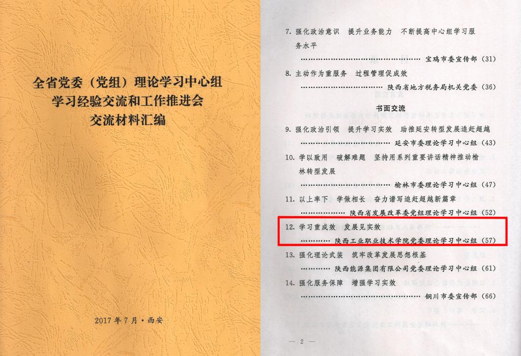 7月20日,全省党委理论学习中心组学习经验交流和工作推进会召开。省委常委、省委宣传部部长庄长兴出席会议并讲话,省委宣传部副部长李伟解读通报《学习规则》和《实施办法》。省人民检察院、省地税局、省国资委等8个单位作大会交流,我院作为高职院校的唯一代表,与延安市委、榆林市委等5个单位作书面交流。