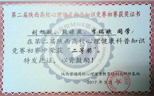 我院喜获第二届陕西高校心理健康科普知识竞赛二等奖