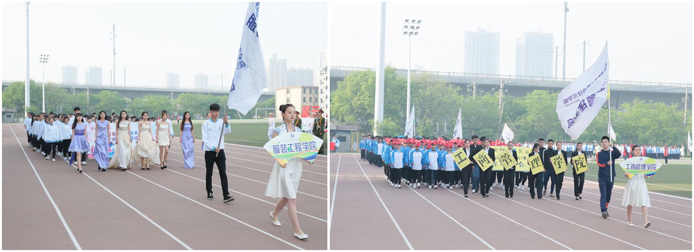 伴随着慷慨激昂的运动员进行曲,国旗、校旗和会徽方阵、裁判员及十个二级学院的师生运动员方队意气风发、精神抖擞地依次走过主席台,赢得全场经久不息的掌声和喝彩。